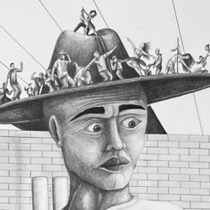 Ein Flammenkopf, ein Sturm in Zeitlupe, eine Haut aus Holz