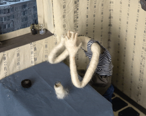 Ich bin in Moskau aufgewachsen und zum Studium nach Deutschland gekommen. Den Ausbruch des Krieges habe ich während eines Besuchs bei der Mutter in Russland erlebt. Ich habe mein Land verlassen und werde wahrscheinlich für lange Zeit nicht dorthin zurückkehren. Ich habe erlebt, wie schwierig, oft unmöglich, das Sprechen über den Krieg und die Repression im Land geworden ist. Der Riss geht quer durch die Familien. In meiner Animation habe ich versucht, Bilder für die Gewalt, das Verstummen und die Hoffnungslosigkeit der Situation zu finden.