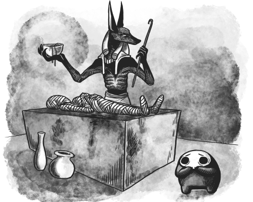 Die Ästhetik des Makabren hat mich schon immer fasziniert. Da es kaum etwas gibt, das makabrer ist als der Tod selbst, fiel die Wahl auf dieses Thema. Ich wollte mich intensiv mit Charakterdesign beschäftigen und recherchierte Personifizierungen des Todes aus verschiedenen Kulturen und Epochen. Mir wurde schnell klar, dass eine Interaktion zwischen diesen Charakteren interessanter ist, als wenn sie einfach alle zusammenhanglos illustriert werden. Dafür entwarf ich eine Geschichte, in der die Tode eine Konferenz abhalten, um einen neuen Tod, den „Cybertod“, in ihre Gemeinschaft aufzunehmen.